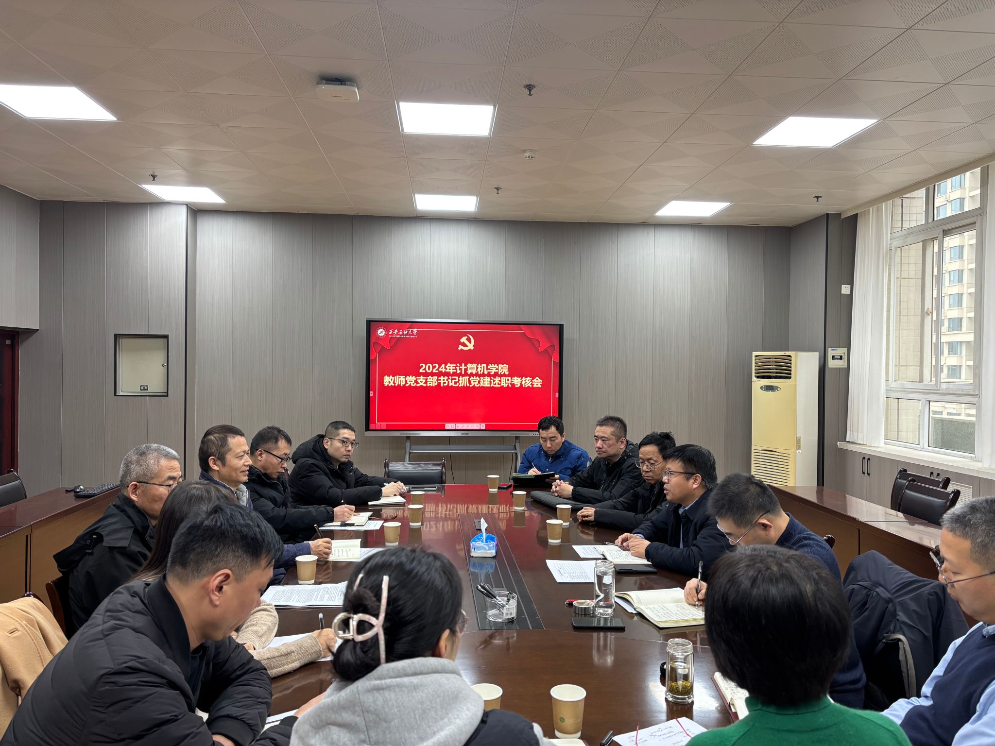 张骁勇在认真听取每一位书记的述职后,对学院教师党支部书记抓党建工作进行了工作指导。他充分肯定了8位教师党支部书记在2024年抓党建工作中取得的成绩,并结合计算机学院的学科专业特点、教学科研需求、人才培养要求等实际,对基层党支部书记抓党建工作进行了具体指导。一是要紧跟智能时代要求和学校发展步伐,更新党支部政治理论学习的内容。要及时跟进新理论、新方法迭代,积极开展大数据、人工智能等学科前沿的学习,积极探索智慧教育实践。二是要把握好对党支部开展“三会一课”的基础性要求,创新性地开展工作,扎实推进“分类指导、争先进位”三年行动计划。基层教师党支部的党建工作要为提升教师的素养和能力、提高人才培养质量保驾护航。三是要结合学院实际,加强党员队伍建设。要加强教师党员的教育管理监督,更要凝聚师生力量,注重在青年教师群众中发展党员。他希望各教师党支部书记认真总结经验,不断提升党建工作水平,为实现学校党委提出的“三大目标”,营造学校的“三个氛围”,推动学校学院高质量发展贡献基层组织的力量。