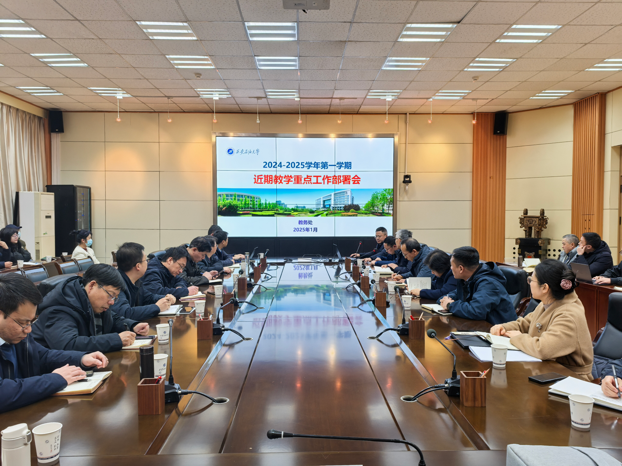 会上,教务处、实验室管理处(实验中心)、高教研究与评估督导中心负责人就近期课堂教学、实践教学、教学研究、教材建设、本科招生、教学质量监控、实验室建设与管理等方面工作进行了安排部署。