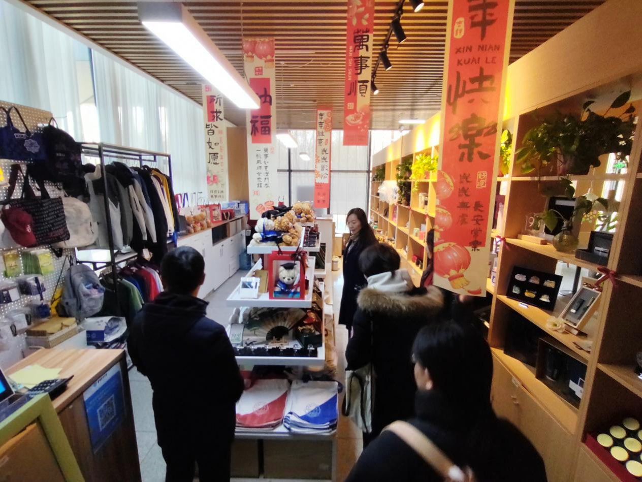 王晓一行在陈世兵陪同下参观了位于西安电子科技大学南校区的西安壹玖叁壹学术交流服务有限公司旗下文创板块实体店,深入细致了解了西安电子科技大学文创产品的设计、研发、定制、推广过程及经营现状。这里店面宽敞明亮,时尚典雅,各色精美的文创产品以西电文化特色元素为设计基础,传递着对校园岁月的一份眷恋,承载了学生和校友对母校的情感纪念和精神归属。这里不单打造了一个定制、展示和销售文创产品的窗口,也成为充满校园文艺气息的休闲所在,记录了西电的历史和传统,唤起人们对校园生活和大学文化的回忆。校园文创通过文创实体店、线上小程序商城等销售渠道,传达可触可感的历史印记、青春回忆,传承和弘扬校园文化,传播校园文化精神。