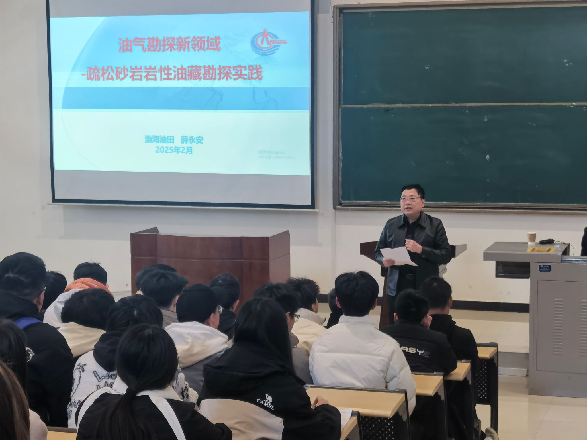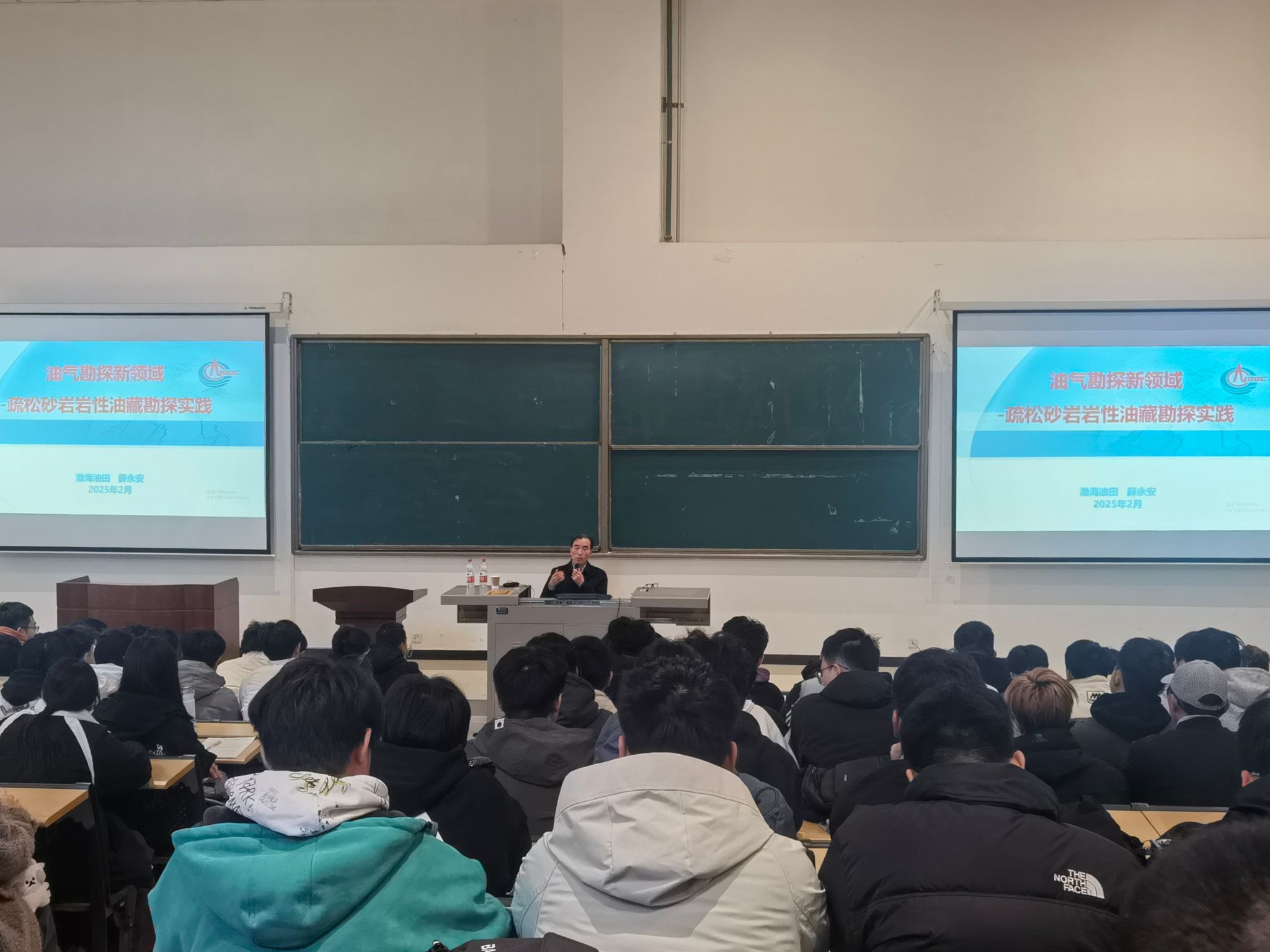 为拓宽学术视野、启迪科研思维,2月27日上午,地球科学与工程学院邀请中海油渤海油田原副总经理兼总地质师、首席科学家 薛永安教授为学院师生带来一场题为“油气勘探新领域-疏松砂岩岩性油藏勘探与系列大发现”的学术讲座。讲座由学院党委书记马行天主持,学院各年级辅导员及200余名本科生参加。