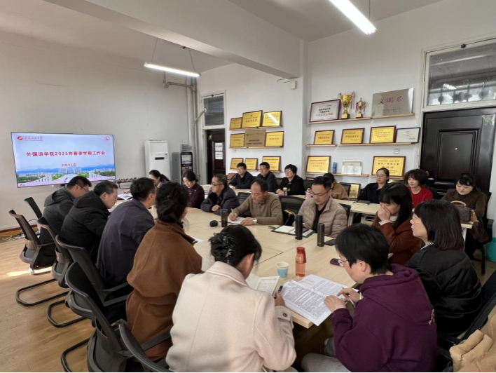 2月26日下午,外国语学院在雁塔校区华油能源楼727会议室召开2025年春季新学期工作会议。会议旨在全面规划新学期的重点工作,为学院的持续发展注入新动力、激发新活力。院党委书记张建高、副院长陈武、副书记邱岭以及各专业负责人、各系部主任、副主任,教工党支部书记、副书记及学院科级干部参加会议。会议由副院长陈武主持。