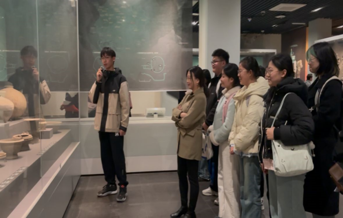 西安博物院是一座集文物收藏、科学研究、社会教育、园林休闲为一体的综合性博物馆。博物馆内藏品丰富,涵盖了从远古时期到近现代的历史文物,是了解西安乃至陕西历史文化的重要窗口。活动当天,“英锐实践团”成员在博物馆工作人员的带领下,对汉代玉杯、金背瑞兽葡萄镜、秦代玉高足杯等文物进行英文讲解,了解了西安作为十三朝古都的辉煌历史和文化底蕴。此次活动旨在通过参观博物院,提升学生的英语表达能力,加深对中华优秀传统文化的理解与传承,同时助力中华文化的国际传播。