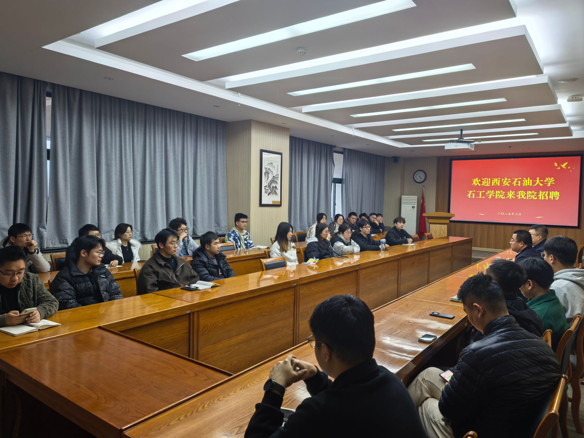 调研期间,我院在中国石油大学(华东)举办了青年教师专场招聘会。黄海、王琛向与会博士生及青年学者详细介绍了学院的发展现状、学科优势、平台建设、人才政策以及未来发展规划,诚挚邀请优秀青年学者加盟学院,共谋发展。