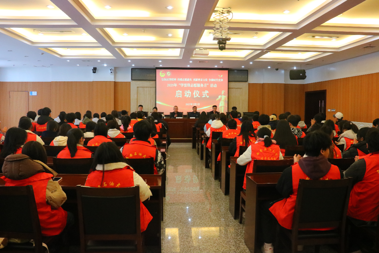 启动仪式上,校团委副书记王军策宣读了《关于开展2025年“学雷锋志愿服务月”活动的通知》,校团委兼职副书记、石油工程学院团委书记史阳及青年志愿者协会会长、化学化工学院化卓2201班朱启航分别作交流发言。