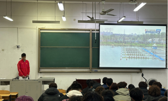 在近一个小时的报告中,长安赛艇俱乐部白军琪教练以自己深厚的学术底蕴和丰富的实践经验,首先从赛艇运动的起源、发展到其在全球、全国范围内的广泛影响,再从赛艇的种类与特点、装备与场地、赛事与规则到团队合作在赛艇中的重要性,最后从赛艇运动的科学训练、技术解析、应用推广到赛艇运动的创新与发展,为同学们描绘了一幅幅生动的水上画卷,不仅让同学们对赛艇运动有了深入的了解,更让同学们感受到了赛艇运动所蕴含的独特魅力和无限可能。
