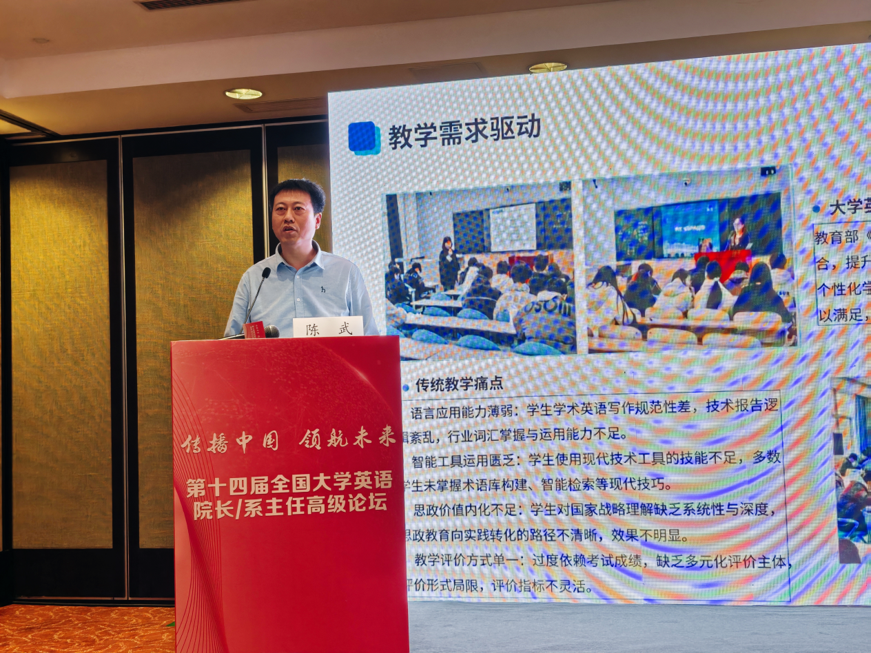在“数字赋能与课程创新:AI时代下的中西部高校外语教育未来之路”平行论坛上,外国语学院副院长陈武受邀作了题为《基于WELearn平台的大学英语混合式教学创新实践与效果分析——bat365中文官方网站为例》的报告,分享了bat365在大学英语教学改革方面的宝贵经验。