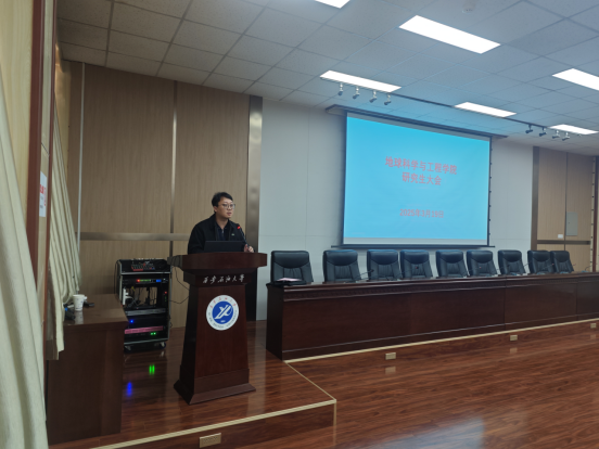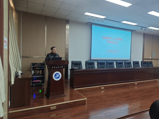 副院长党伟指出,全面提升研究生培养质量是学院的中心任务之一。对此,他针对全体研究生提出几点要求,一是要端正学风作风,遵守各项规章制度,在科研学术上追赶超越;二是要树立正确就业观念,要认真考虑个人情况,开拓就业思路,把握就业机会;三是要时刻注意人身安全,在保障自身安全的前提下开展工作;四是鼓励研究生积极报考博士,将攻读博士研究生作为个人学术与职业生涯的重要选择,为未来发展打下坚实基础。