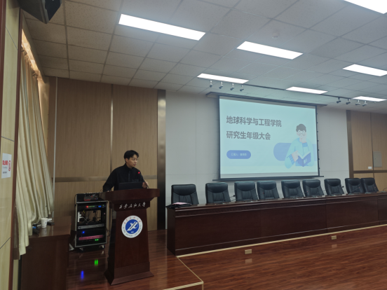 3月19日下午,地球科学与工程学院在雁塔校区西阶会议中心第五会议室(主会场)和鄠邑校区博思楼B125(分会场)同步召开研究生大会,学院领导班子成员、科研办主任、研究生辅导员以及全体研究生参加会议,会议由副院长党伟主持。
