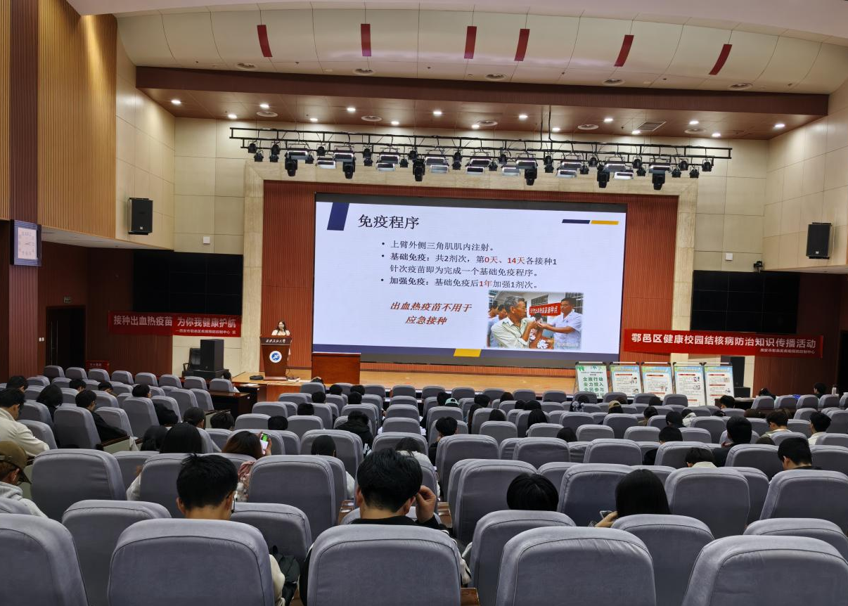 为迎接第30个“世界防治结核病日”,进一步增强师生结核病防控意识,3月24日、25日下午校医院联合学生工作部(处)、研究生工作部邀请西安市雁塔区疾病预防控制中心副主任医师李海军、鄠邑区疾病预防控制中心结防科副科长王旦、郑美辰老师分别在雁塔校区、鄠邑校区开展“全面行动 全力投入 全民参与 终结结核”、流行性出血热专题知识讲座。校医院部分医务人员、师生、社区居民约300人参加了讲座。报告开始前,校医院医务人员在报告厅外设立宣传展板、咨询台,为学生发放了有关结核病、流行性出血热宣传手册和宣传单等宣传资料。
