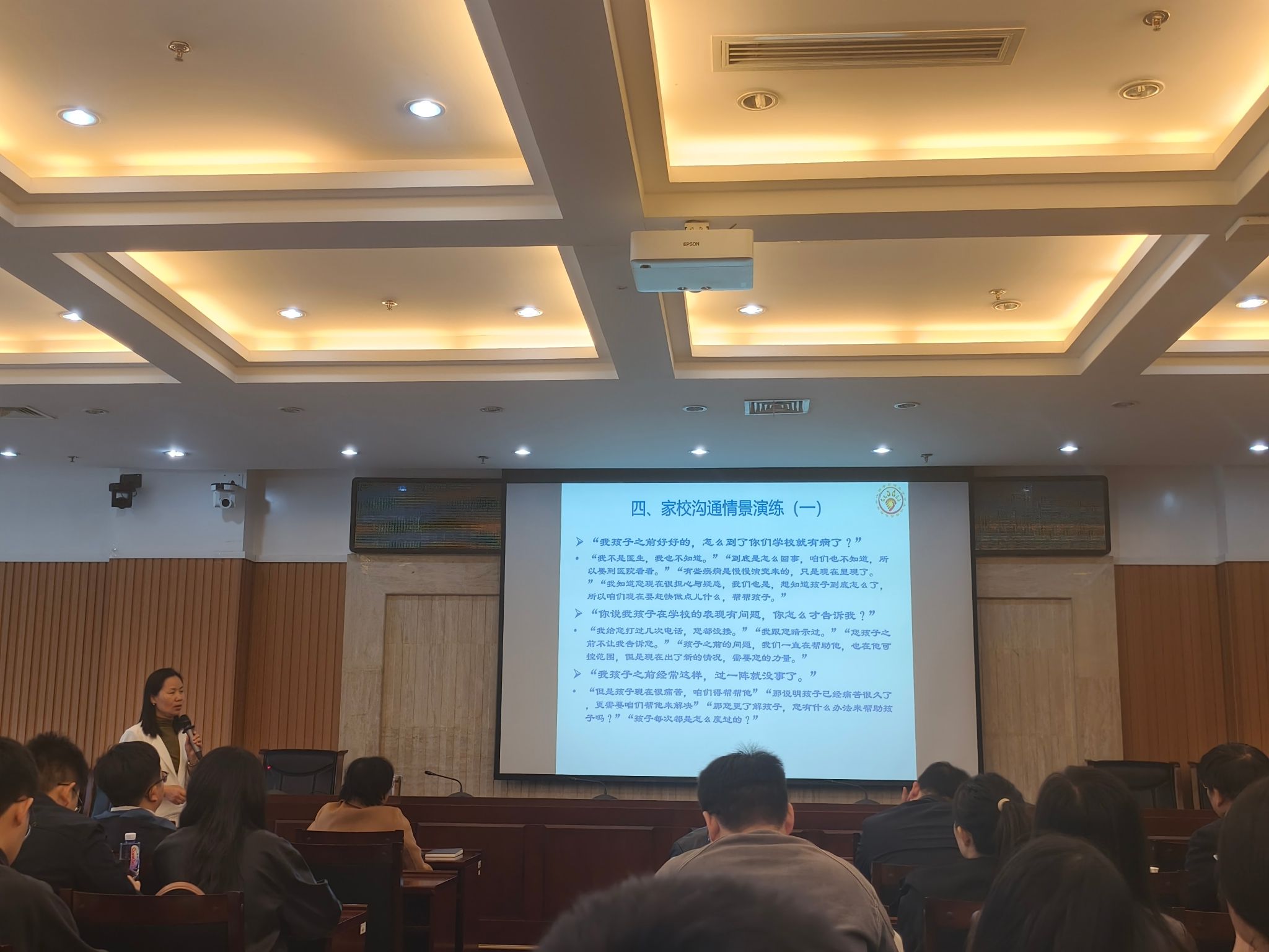 3月27日上午,学生工作部在鄠邑校区第一会议室举办“铁人式”学工干部培训第一讲,bat365学生心理成长指导中心主任肖琼受邀作题为《高校心理危机管理中的家校沟通》的专题培训,培训由学生工作部副部长毕轶慧主持,学校全体学工干部参加。