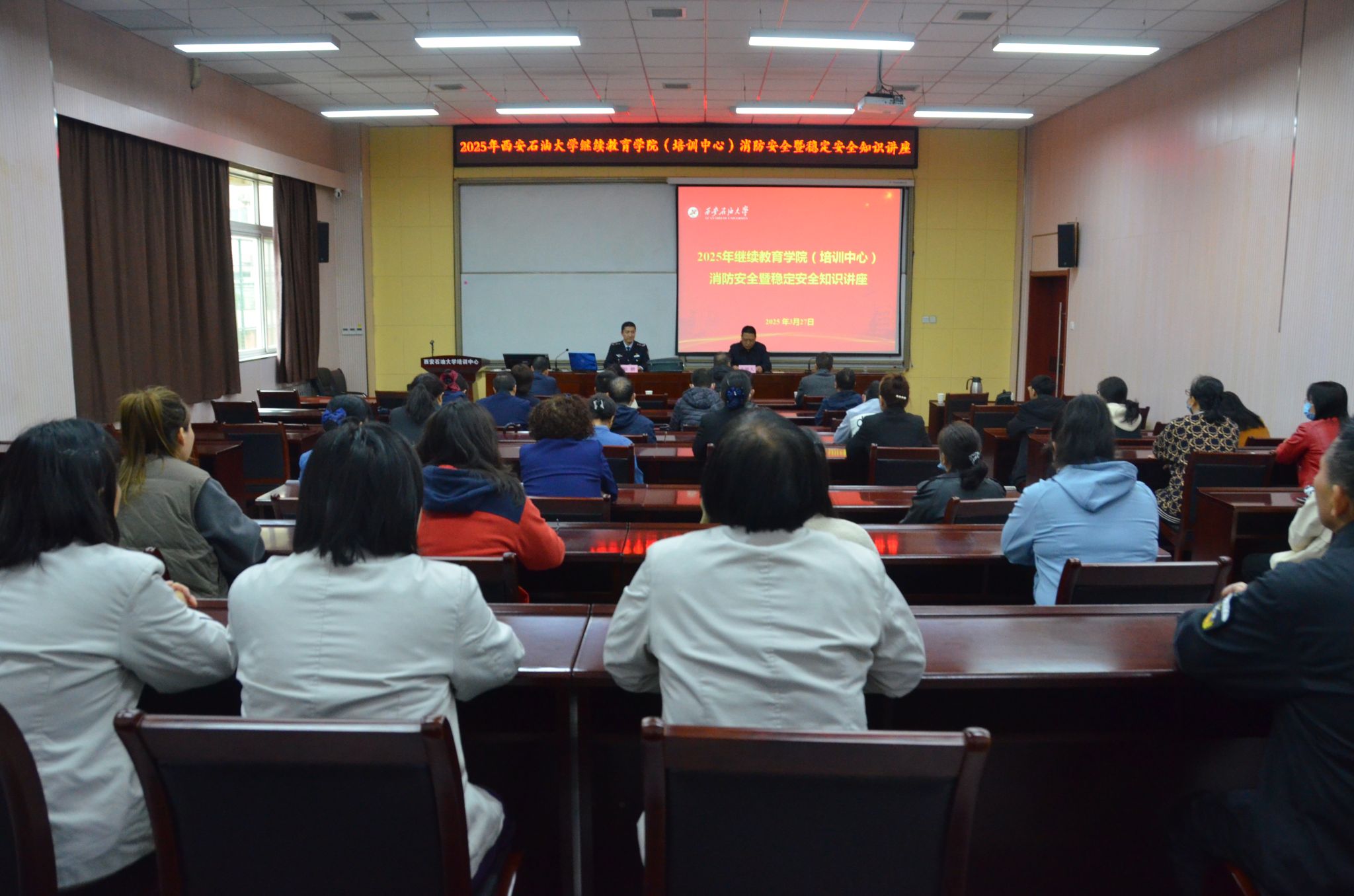为进一步落实安全稳定要求,筑牢校园安全防线,在校保卫处的大力支持下,继续教育学院(培训中心)精心策划并积极组织开展了一系列形式多样的活动,集中收看消防安全公开课,开展安全稳定知识学习、消防演练以及规范工作操作流程等,全方位提高全体教职工与合作方员工的安全意识和应急处理能力,为打造安全稳定的工作环境奠定坚实基础。