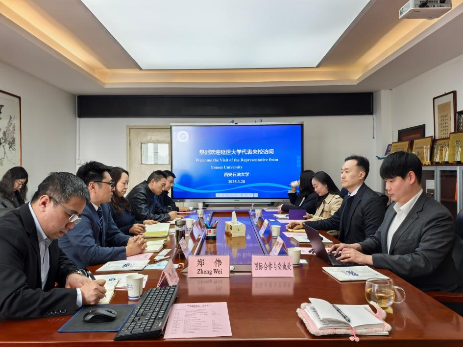 2025年3月28日,韩国延世大学国际学研究生院全球精英课程项目主任金东灿教授、招生负责主任杜健教授和项目讲师占茵一行三人来校访问。双方在东方石油楼801会议室进行了合作座谈。区域国别研究院执行院长刘辉、体育学院院长李寿邦、外国语学院王文峰副教授及国际合作与交流处国际项目办公室等有关负责人等参加座谈会,会议由国际合作与交流处副处长、国际教育学院副院长颜庭星主持。