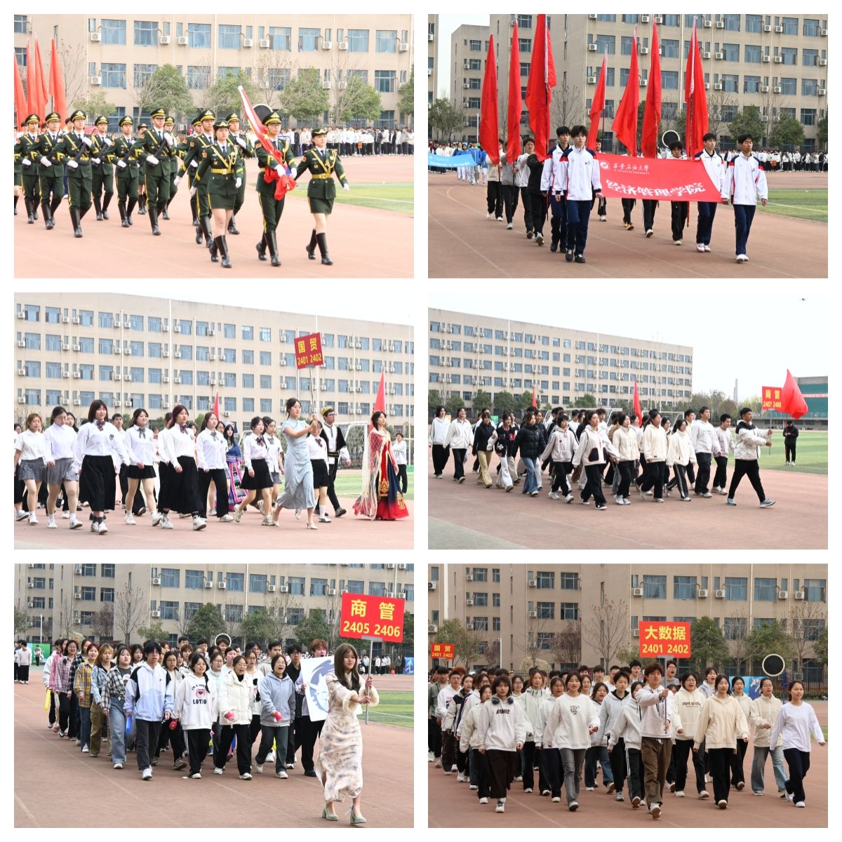 3月29日,经济管理学院第十五届春季田径运动会在鄠邑校区东操场顺利举办。经济管理学院党委书记谈建勤、党委副书记杨生强、副院长董春诗、团委书记张硕及各年级辅导员出席了开幕式。