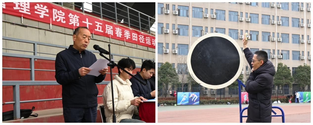 经济管理学院党委书记谈建勤致开幕词,他代表学院对全体工作人员的辛勤付出表示感谢,对运动健儿们致以美好祝愿。他强调全体参赛同学要牢固树立"友谊第一"的理念。裁判组要严格执法、公正裁决,工作人员要恪尽职守、细致服务,志愿者要热情周到、主动作为。希望每位运动员都能量力而行、科学参赛,既追求卓越,又珍爱身体。共同营造一个公平、安全、有序的竞赛环境,让本届运动会成为展现学院风采、彰显人文关怀的精彩盛会。总裁判长代表贾雨豪与运动员代表邝显虹分别宣誓。经济管理学院副院长董春诗为本次运动会鸣枪开赛。