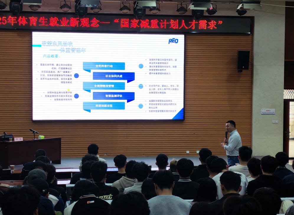 讲座中,苏林院长立足国家“健康中国2030”战略背景,深入剖析了《国家减重计划》对体育教育行业的深远影响。他指出,随着经济的快速发展和人民生活水平的提高,国人的饮食结构和生活方式发生了巨大变化,超重和肥胖问题日益凸显。今年全国两会期间,国家卫健委提出实施“体重管理年”三年行动计划,这必将让“减重”这件事变得更加重要和火爆,社会必将对科学减重指导、运动健康管理等专业人才的需求激增,体育专业学生应抓住这一政策红利,拓宽职业视野,从“传统体育教育”向“大健康服务领域”延伸。