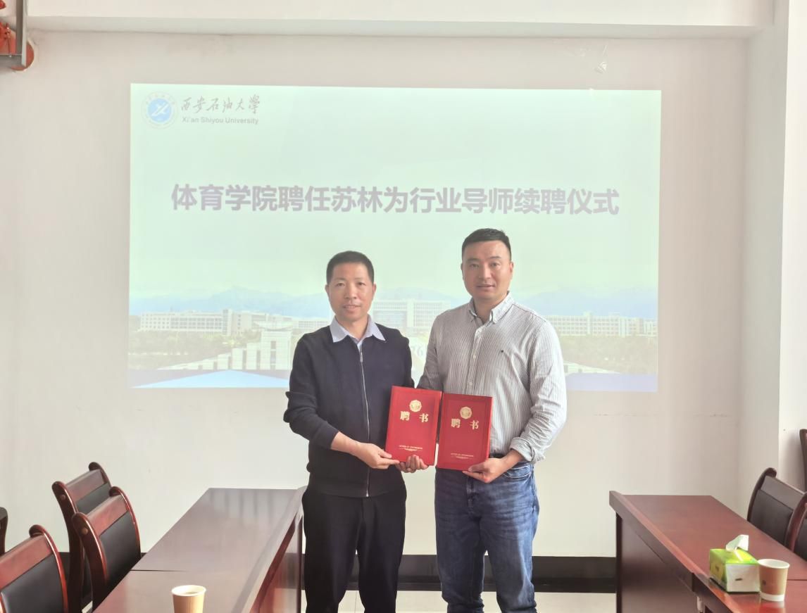 讲座开始前,体育学院在鄠邑校区东体育场208会议室举行了续聘仪式,继续聘任苏林院长为社会体育指导与管理专业行业导师、体育硕士专业学位研究生校外导师。