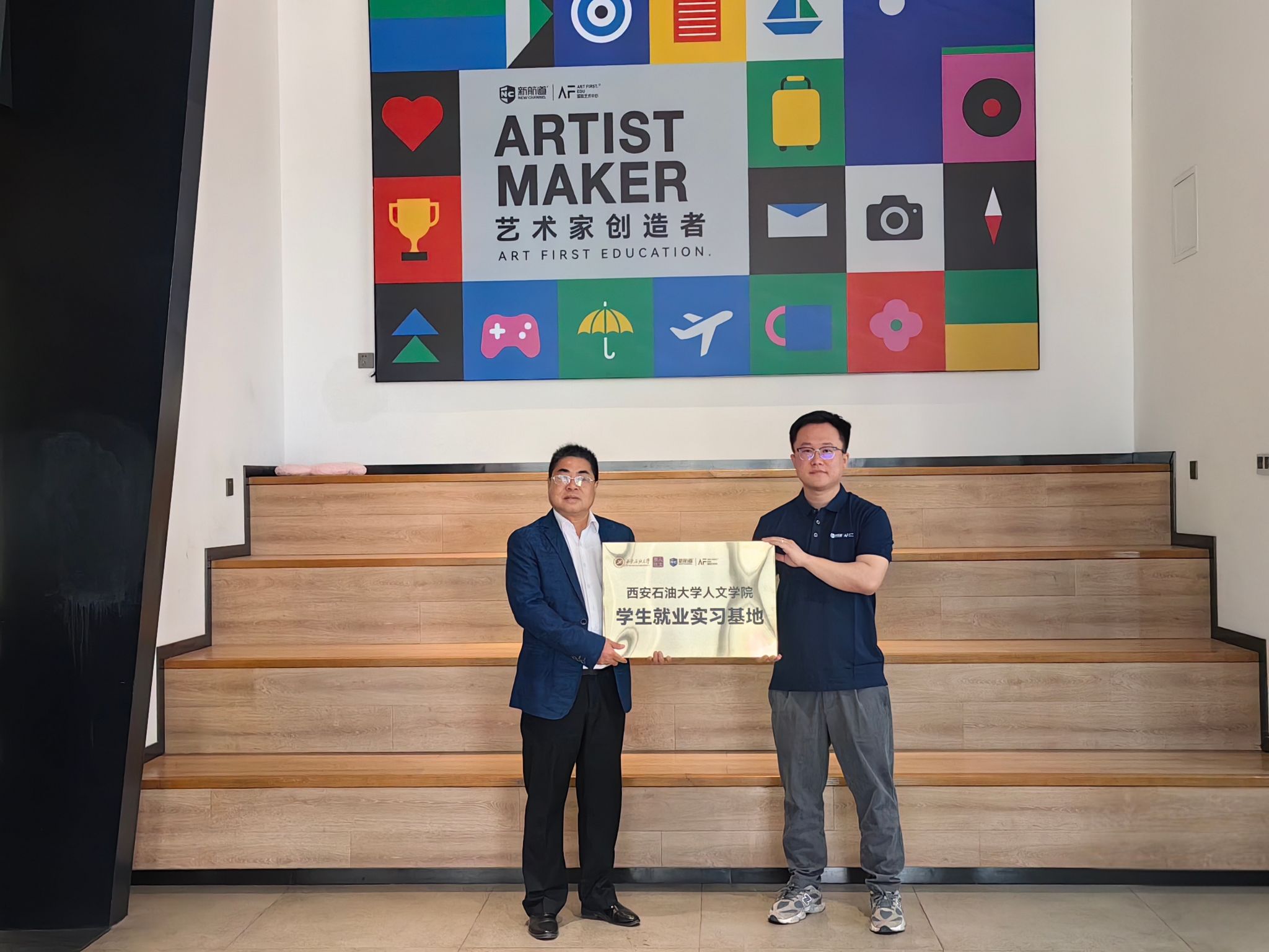 为深化校企合作、拓宽学生国际视野与就业路径,4月3日,人文学院与AF国际艺术中心举行就业实习基地签约及挂牌仪式。人文学院党委书记余小勇、副书记盛丹、学工办主任范嘉欣、毕业班辅导员张馨元一行四人赴AF国际艺术中心,开展访企拓岗促就业活动,与西安校区负责人姜斌签订就业实习基地协议书,并为人文学院就业实习基地共同揭牌。