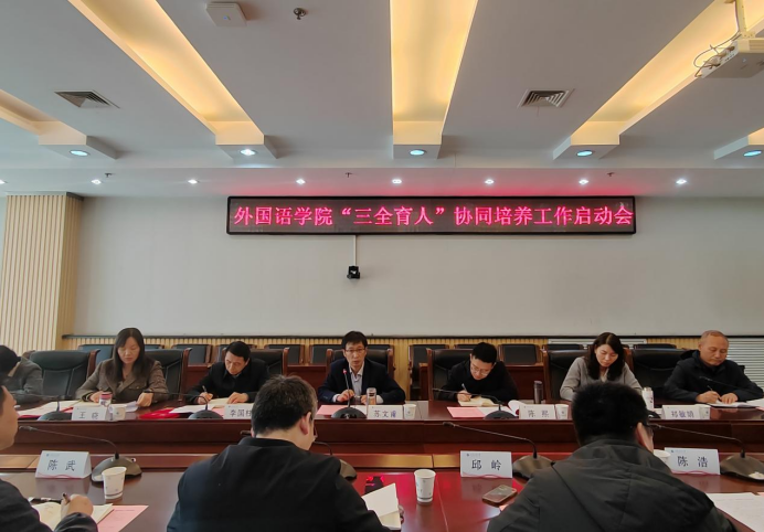 4月2日,外国语学院在鄠邑校区图书馆第二会议室召开“三全育人”协同培养工作启动会,副校长苏文甫出席会议并讲话。会议由外国语学院党委书记张建高主持。