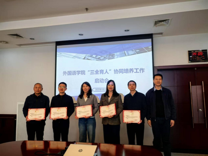 会上,外国语学院负责人介绍了“三全育人”协同培养工作实施方案并为兼职辅导员颁发聘书。会议结束后,受聘兼职辅导员与各班级学生召开见面会。