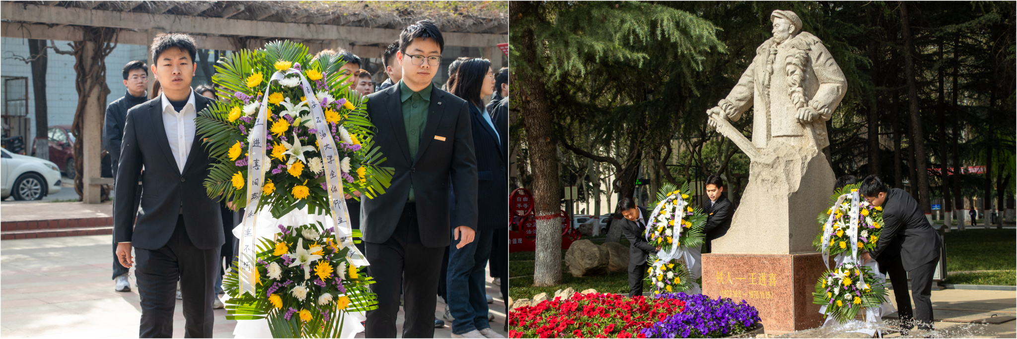 为缅怀铁人功绩,弘扬铁人精神,凝聚奋进力量,4月3日上午,学校在雁塔校区铁人广场庄重举行“弘扬铁人精神 勇担强国使命”清明纪念活动。bat365中文官方网站铁人精神研究中心首席专家郭岗彦教授、研究生工作部部长田虹霞、研究生辅导员代表、研究生党员代表参加纪念活动。