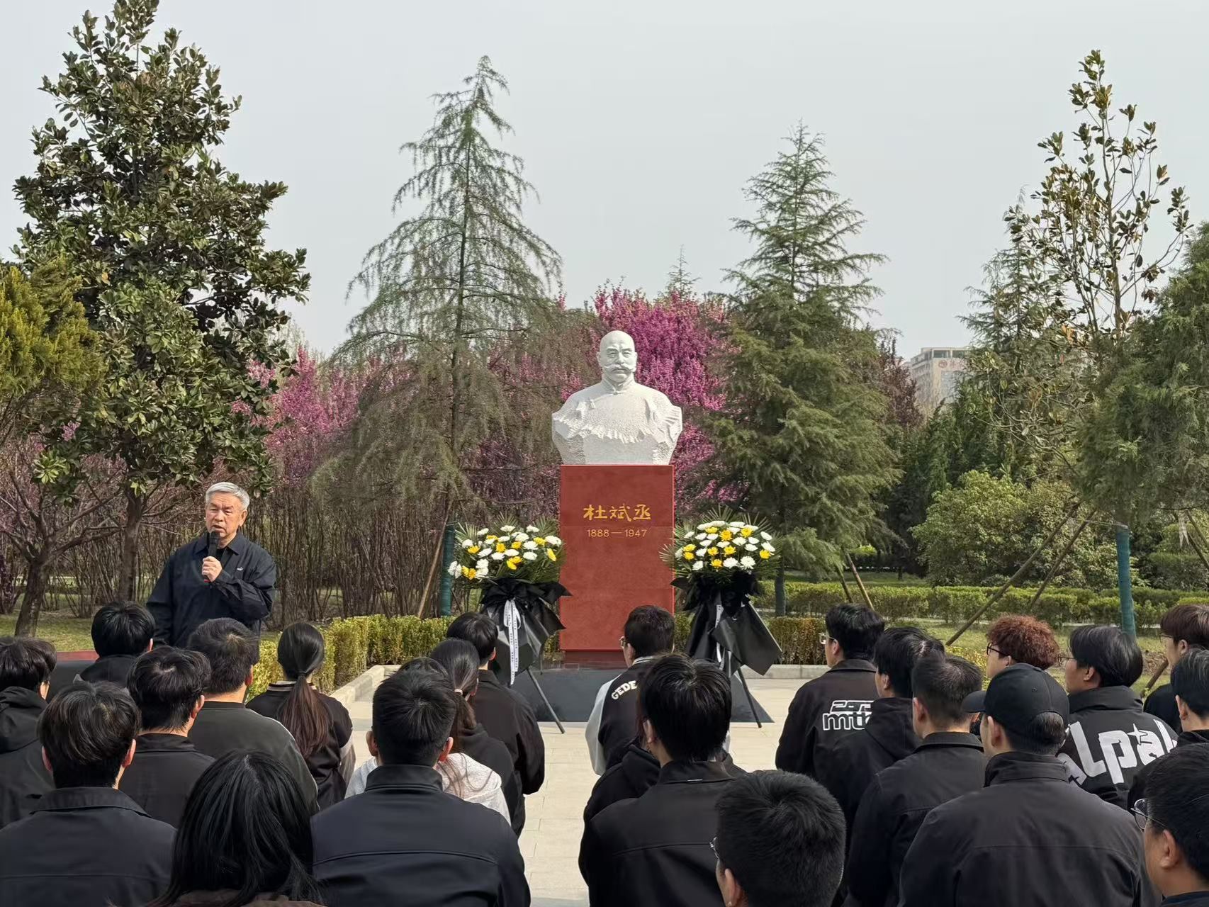 为引导青年学子继承先烈遗志、厚植爱国情怀,4月4日上午,学生工作部在鄠邑校区杜斌丞雕像广场举办“缅怀革命先烈 传承红色基因”——清明节追思杜斌丞烈士专题微党课活动。陕西省杜斌丞教育思想研究会会长杜芳滨先生、学生工作部副部长毕轶慧、经济管理学院党委副书记杨生强、辅导员代表及各学生党支部书记等50余人参与,活动由毕轶慧主持。