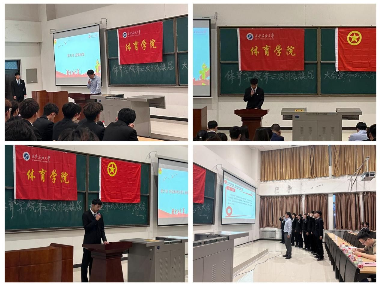 大会在庄严的国歌声中拉开帷幕。体育学院党总支书记苟毅飞代表学院党总支向校团委及各兄弟院(系)一直以来对学院团学工作的支持和帮助表示衷心的感谢,对学院2024年各项团学工作取得的成绩给予肯定。他结合习近平总书记重要讲话精神对全体团学干部提出了四点要求:一是要加强思想引领,铸牢思想根基。要持续加强思想引领职能,引导同学们坚定理想信念,树立正确的价值观,为成长为有理想、有本领、有担当的新时代青年奠定坚实基础。二是要强化组织建设,提升服务能力。通过开展培训、交流和实践活动,培养一批政治坚定、作风优良、能力突出的学生骨干,为学院发展贡献青春力量。三是要聚焦学风建设,助力同学成长。通过多样的形式,为同学们提供更多的学习资源和成长平台,营造浓厚的学习氛围。四是要丰富文体活动,增强校园活力。要继续围绕同学们的兴趣和需求,开展更加丰富的文体活动,让同学们在活动中锻炼身体、陶冶情操、提升综合素质。
