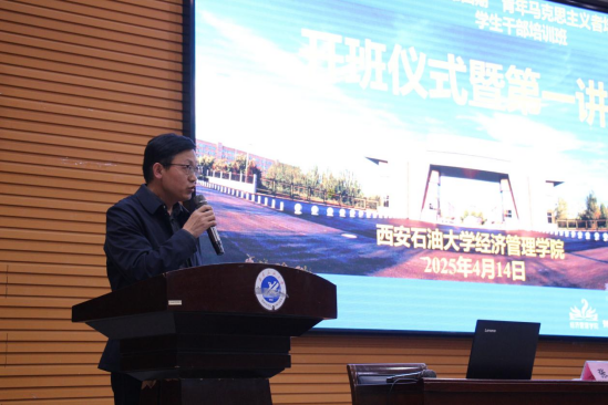 为深入学习贯彻习近平新时代中国特色社会主义思想和党的二十届三中全会精神,进一步提升青年大学生的马克思主义理论素养和实践能力,着力为党培养和输送坚定的青年政治骨干,4月14日晚,经济管理学院第四期“青年马克思主义者培养工程”学生干部培训班开班仪式暨第一讲在鄠邑校区就业指导中心多功能厅118隆重举行。校党委副书记张木出席开班仪式并作专题辅导报告。全体学生工作干部以及200余名学生干部参加了培训班开班仪式暨第一讲。开班仪式由经济管理学院党委副书记杨生强主持。
