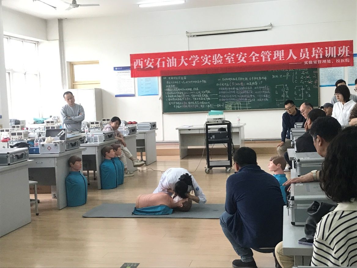 培训内容二—校园应急救护培训。校医院主管护师、陕西省红十字救护师宋彦霞、解姣两位老师为全体参训人员进行了心肺复苏技术(CPR)和自动体外除颤仪(AED)的使用、气道异物梗阻的应急处理(海姆立克急救法)、外伤止血与包扎技巧、烧烫伤的科学处理等紧急救护知识和技能的培训。她们通过生动的案例分析和实景演示,向大家详细讲解了各类突发情况的处置要点和注意事项,令大家受益匪浅。