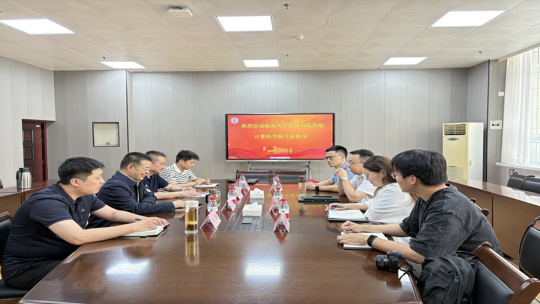 为深化教育改革,拓展院校合作,提高人才培养质量,4月17日下午,海南大学朴诚书院党委副书记(主持工作)闫治一行4人,就学生党建、思政教育、学生管理、毕业生就业创业等工作来计算机学院调研。计算机学院党委书记庞秉谦、副书记庞远及相关同志参加交流座谈。