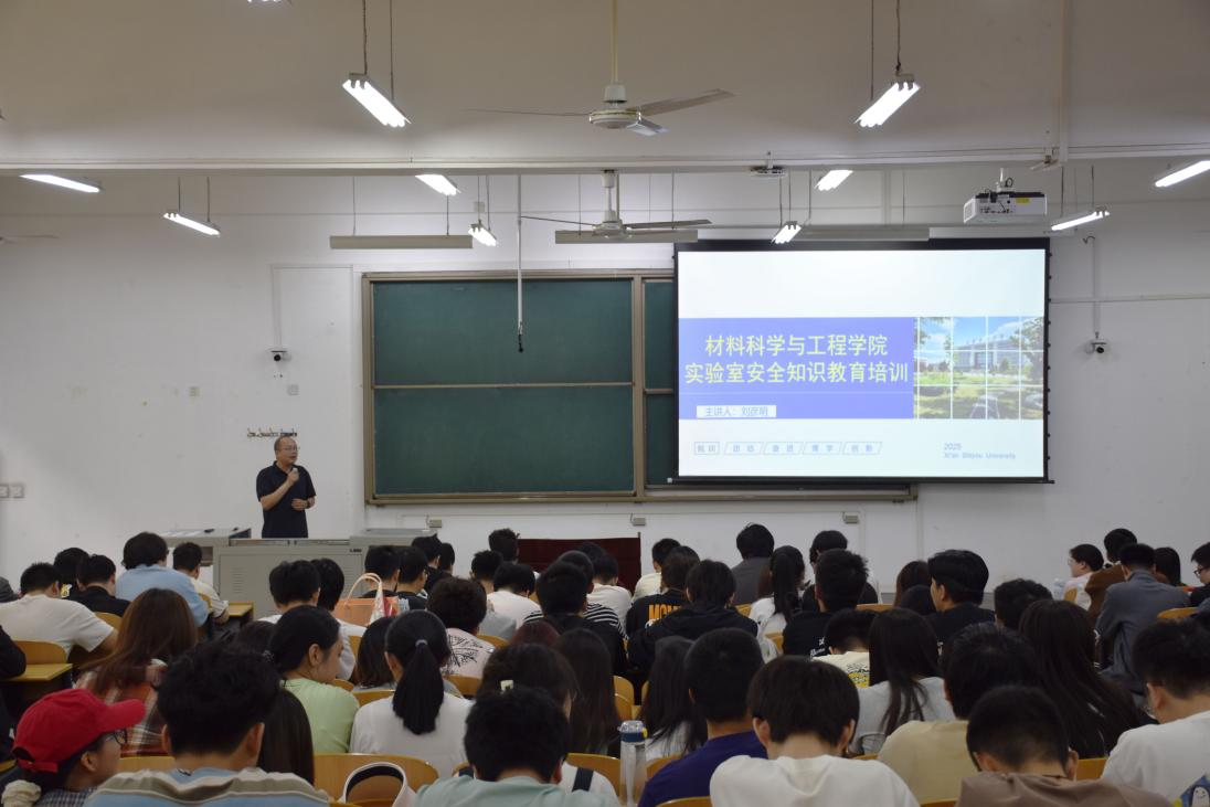根据《陕西省教育厅办公室关于做好2025年度高等学校实验室安全工作的通知》(陕教技办〔2025〕3号)精神,为进一步贯彻落实《bat365中文官方网站2025年安全稳定专项行动月活动方案》文件要求,提高学生安全意识,筑牢校园安全防线,切实保障学校正常教育教学秩序和师生生命财产安全,材料科学与工程学院于4月16日在鄠邑校区博思楼B114举办了2025年度实验室安全知识培训讲座。本次培训由学院实验教学中心主任刘彦明担任主讲,学院2021级和2022级全体本科生共300余人参加培训会。培训会由学院学生工作办公室副主任赵飞主持。