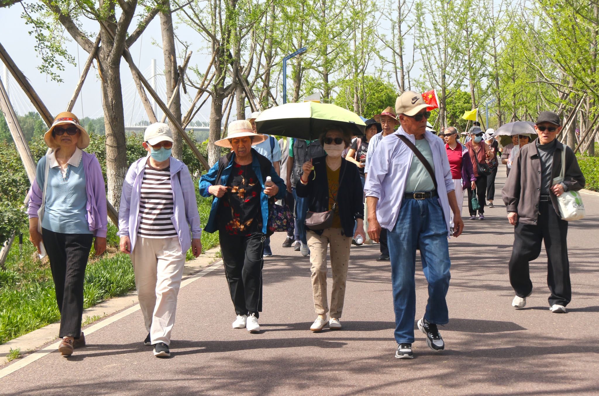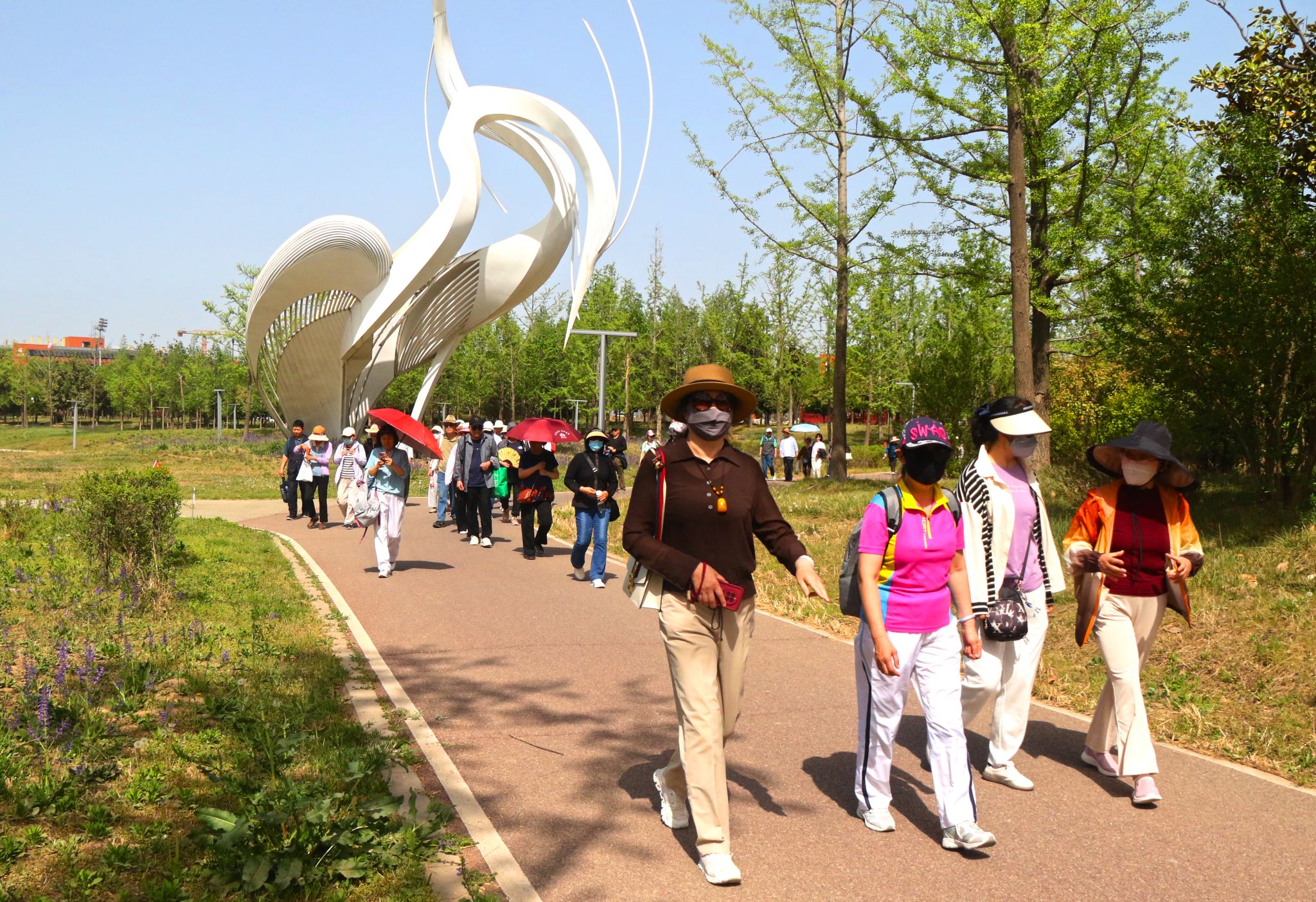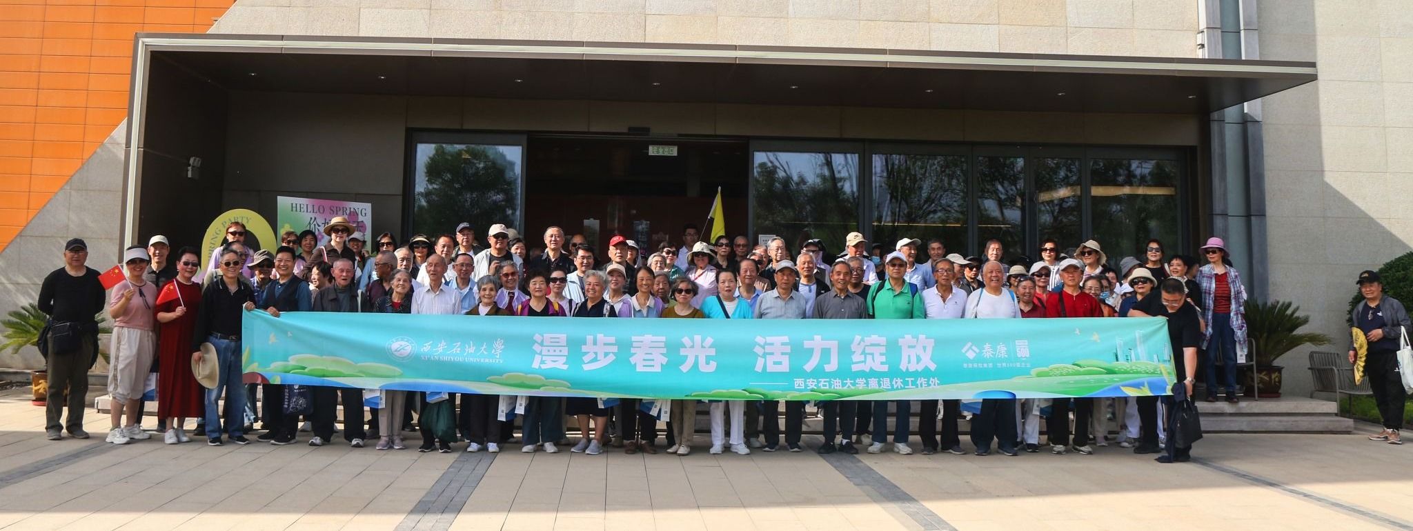 4月17日,bat365离退休教职工老同志共130余人,探访泰康之家·秦园智慧养老社区,漫步沣河梁家滩湿地运动公园。