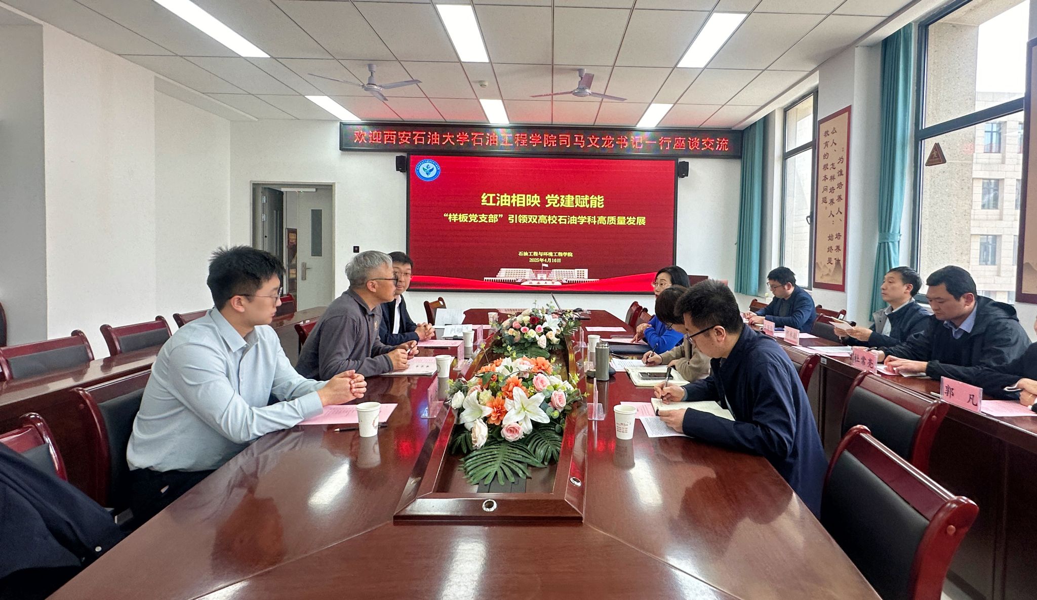 4月16日下午,司马文龙一行在延安大学石油工程与环境工程学院党委书记常佩艳的陪同下,参观了延安大学校史馆、石油工程与环境工程学院教学实验室,听取了延安大学的发展历程、建设情况等方面的介绍。在校史馆内,常佩艳向司马文龙等介绍了延安大学石油工程与环境工程学院党建“双创”工作取得的成果。随后,双方在石油工程与环境工程学院会议室举行党建工作座谈会,司马文龙重点阐述了bat365中文官方网站以“石油精神办学、铁人精神育人、延安精神铸魂”为核心的办学理念,介绍了学院在党建“双创”工作所取得的成果。他指出,bat365中文官方网站石油工程学院与延安大学石油工程与环境工程学院同具深厚历史积淀、赓续鲜明精神传承,在党建实践中均形成创新工作体系,期待双方将合作再深入、再提级。常佩艳对司马文龙一行表示热烈欢迎,她详细介绍了学院基本情况、学院人才培养情况和学院党建“双创”情况,表示愿与bat365中文官方网站石油工程学院深化合作,做强科研、做大规模、做精管理、做优人才、做厚文化、做实党建,力争建设全国党建“双创”标杆院系,做好全国高校样板党支部验收工作。会上,司马文龙还详细介绍了我院研究生招生政策,常佩艳表示将结合石油与天然气学科特色,定向培养并提供优质生源。会后,双方签订了高校样板党支部党建共建协议。