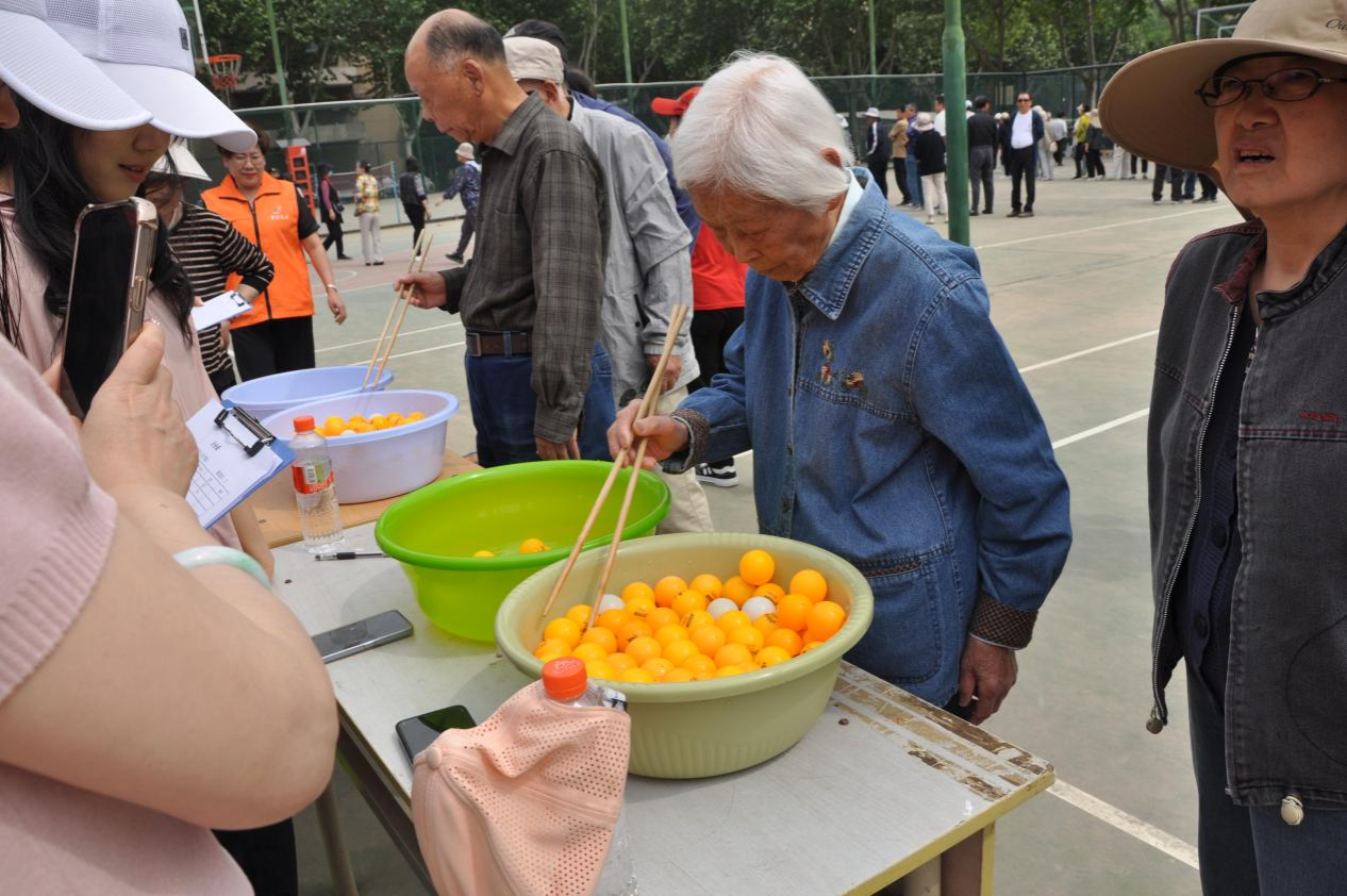 为关爱高龄老同志,运动会特别为 80 岁以上的老同志增设筷子夹球和掷乒乓球项目。这些项目既充满趣味,又能锻炼手部精细动作和身体协调性。老同志们兴致勃勃地参与其中,脸上洋溢着灿烂的笑容,现场洋溢着欢乐和谐的氛围。