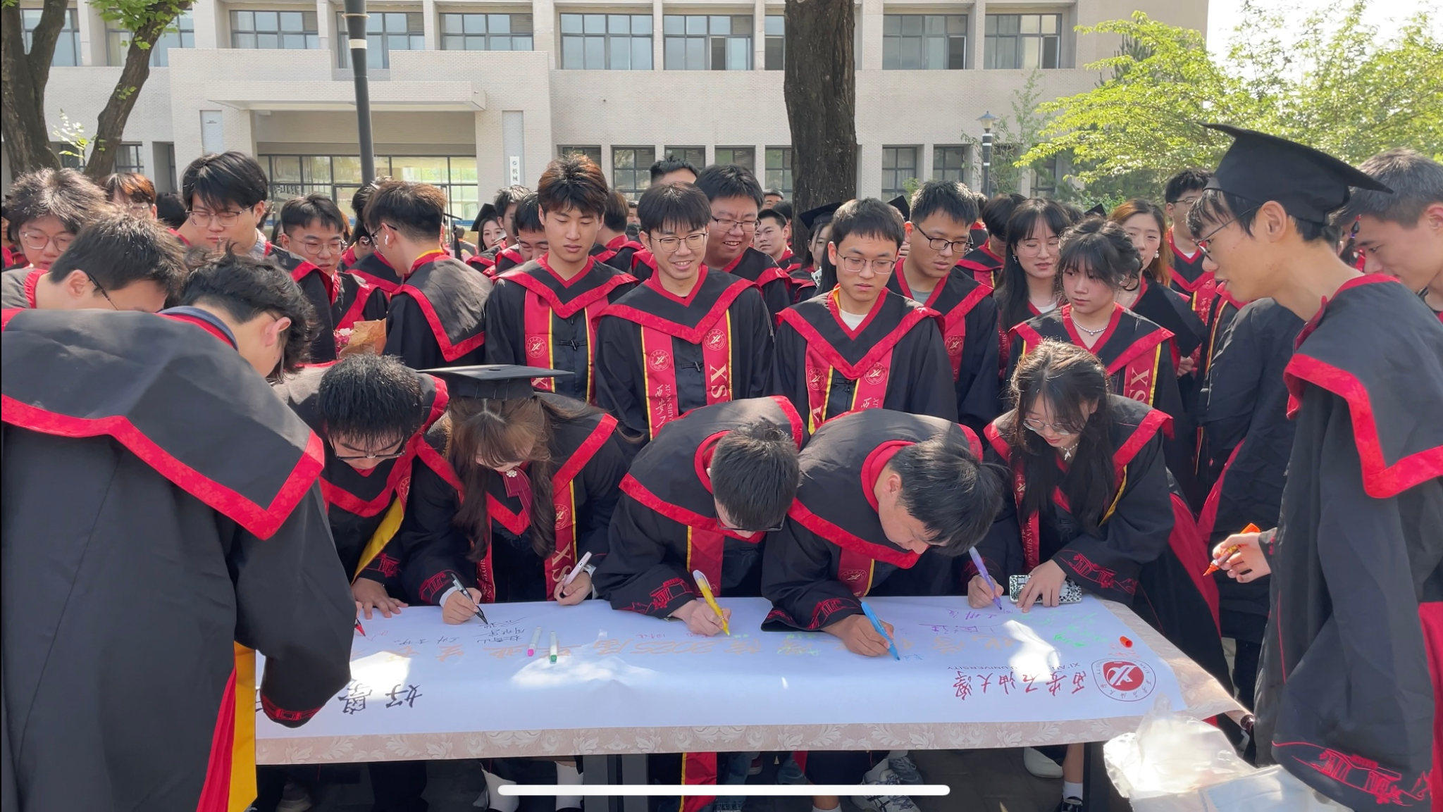 活动现场,长长的卷轴在广场上徐徐展开,犹如一幅承载着青春记忆的画卷。毕业生们纷纷拿起笔,在卷轴上郑重签下自己的姓名,一笔一划,饱含着对母校的深深眷恋,也定格了大学时光的珍贵瞬间。