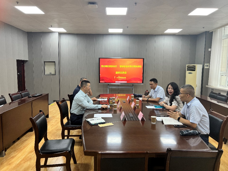 5月30日上午,昆仑银行西安分行副行长梁莹一行到访计算机学院,就校企产教融合、协同育人等方面开展合作交流。