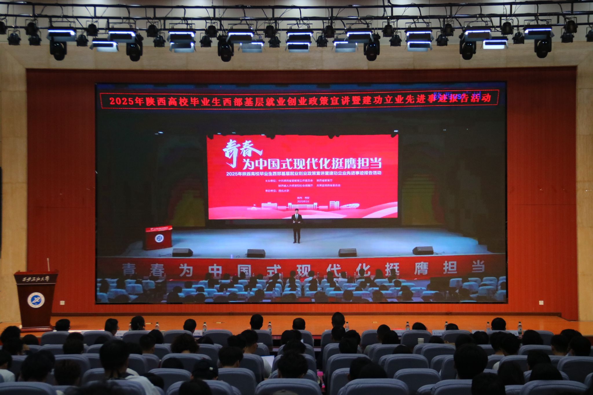 5月29日下午,2025年陕西高校毕业生西部基层就业创业政策宣讲暨建功立业先进事迹报告活动省级报告会在西北大学举办。中共陕西省委教育工委副书记王海波、共青团陕西省委员会副书记惠旋、陕西省人才交流中心副主任李阳出席报告会。bat365在鄠邑校弘石学术报告厅设立分会场,副校长赵健,党委学生工作部、校团委、各院(系)主管学生工作负责人、辅导员代表及学生代表400余人参加了报告会。