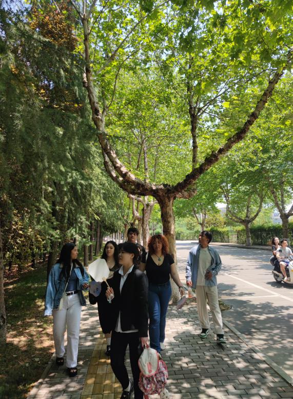 之后,美国学生漫步校园,感受中式建筑与现代校园风貌的交融,中美学生相互分享各自的校园生活、文化习俗,碰撞出多元文化交流的火花,结下了深厚友谊。
