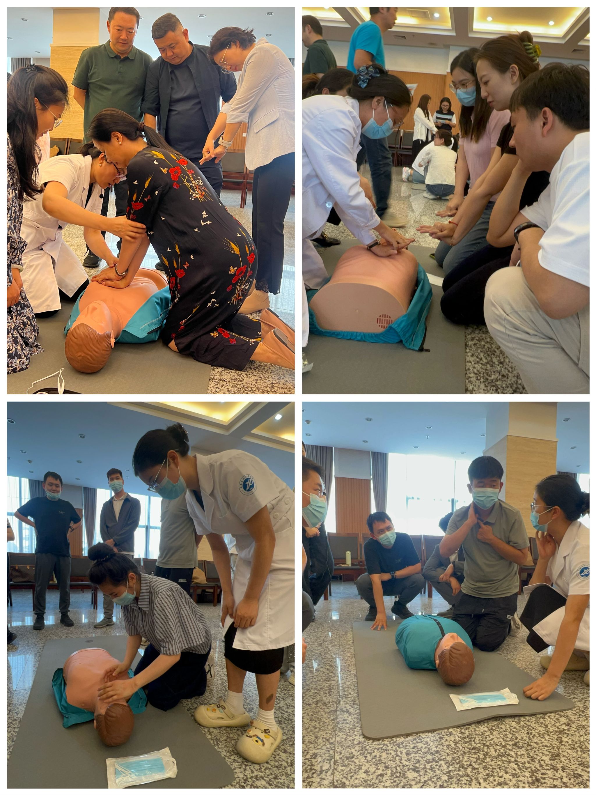 培训现场,宋彦霞医生以扎实的专业功底,围绕心肺复苏&AED使用、气道异物梗阻处置、外伤止血包扎、烧烫伤应急处理等四项核心急救技能展开教学。她先结合典型案例,系统解析心肺复苏、海姆立克急救法的原理、适用场景及操作逻辑,强调“黄金救援时间”内规范施救的关键意义。