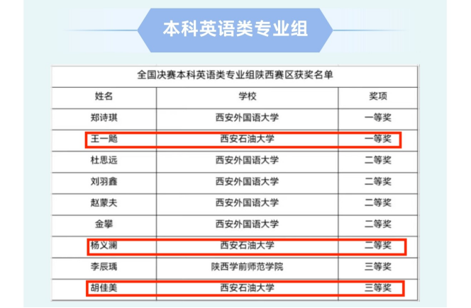 近年来,外国语学院在不断推进英语教学改革的同时注重培养学生的英语语言实践能力,以各类英语竞赛为载体积极拓宽实践平台。自大赛启动以来,学院号召各任课教师积极鼓励、推荐学生参加比赛,以赛促学,不断提升学生的语言能力,助力大学英语四、六级考试及英语专业四、八级考试。近年来,bat365学生陆续在该项比赛国赛中取得优异的成绩。之后,学院将继续以学科竞赛为抓手,赋能学生语言核心素养发展,不断提升学生的语言运用和跨文化交际能力。