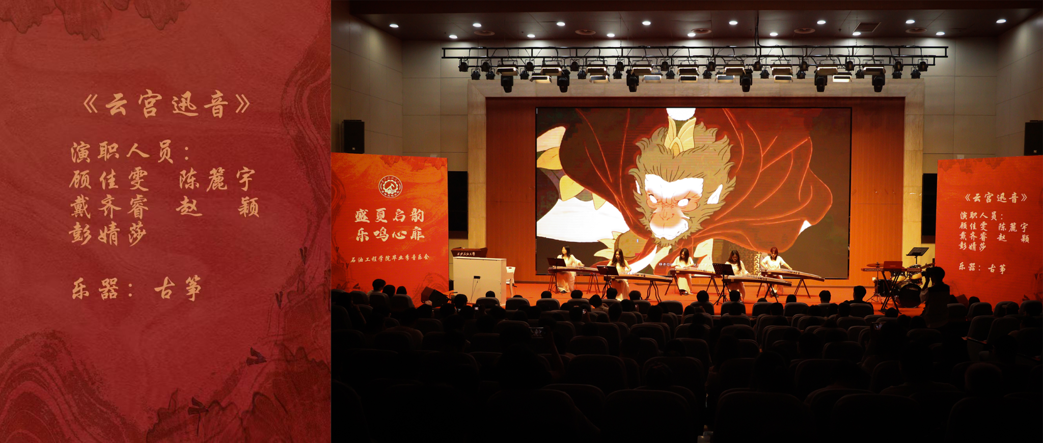 当曙光重现,学校迎来恢复办学的重大转机,古筝合奏《云宫迅音》经典而恢宏大气的旋律骤然响起,象征着学校破除万难、重启教育征程的的坚定决心与非凡勇气。