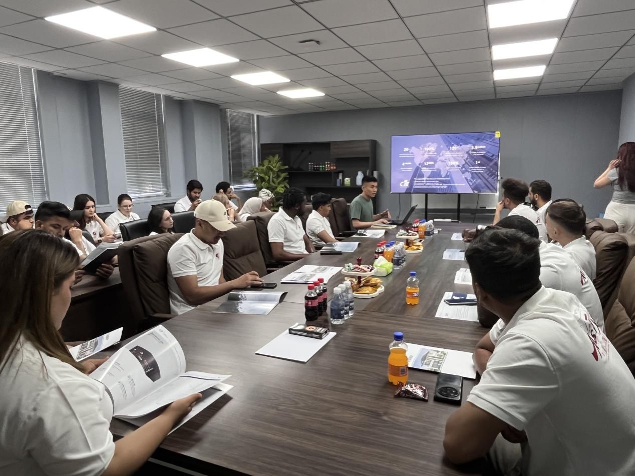 参观结束后,公司技术支持负责人王金胜为留学生们带来了一场精彩的报告会。他详细介绍了长风动力的发展历程、全球化战略布局以及核心技术优势,通过生动的案例和深入浅出的讲解,帮助留学生们对公司有了更全面、更深刻的认识。在互动环节中,留学生们围绕“新能源技术发展趋势”“国际市场合作机遇”等话题积极提问,王金胜结合行业实际一一解答,并鼓励大家充分发挥跨文化背景优势,将创新思维融入未来的职业规划中。