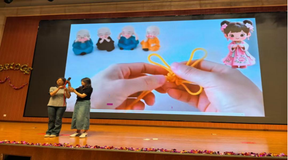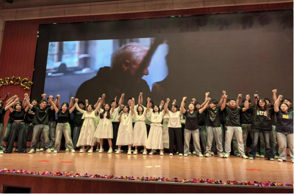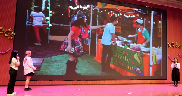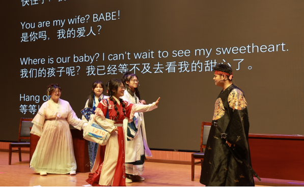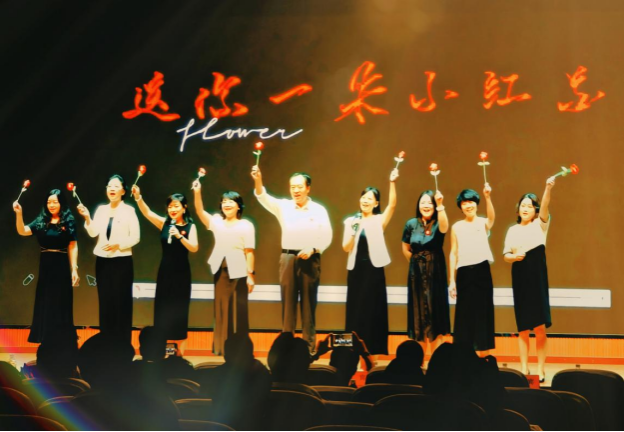本次汇报演出共24个节目,分别由《英语电影赏析》《英语歌曲与英语文化》《中国文化推介》《跨文化交际视听说》《英汉翻译技巧与实践》和《实用英语写作》6门大学英语拓展课程的同学及教师参演。节目异彩纷呈,涵盖了电影配音、拓展课程介绍、歌曲演唱、英语话剧、跨文化情景剧短视频、舞蹈、相声等多种形式。在本次课程汇演的舞台上,外国语学院第一教学部拓展课程组教师温情献唱,致敬成长,倾情演绎歌曲《送你一朵小红花》。他们从讲台走向舞台,用温暖而真挚的歌声传递着对莘莘学子的关爱与期许。这首饱含鼓励与祝福的旋律,在师生心中播撒下温暖与力量,成为汇演中一抹动人的亮色,生动诠释了和谐融洽、积极向上的校园文化氛围与教育温度。