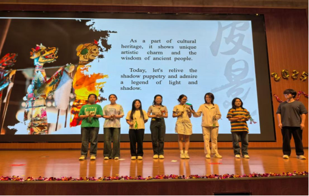 学子们以英语为舟,破浪前行,整个舞台成为了文化交流的璀璨窗口。经济管理学院张云喆的深情独唱《Strawberries & Cigarettes》和电子工程学院马翔宇献唱的迪士尼经典《Reflection》尽显声音魅力;新能源学院史沐涵演绎的《Tough Love》更是将情感与语言技巧融为一体;计算机学院、地球科学与工程学院带来的《长发公主》《狗狗博客》及理学院呈现的《奇迹男孩》配音秀,精准捕捉角色神韵,展现了卓越的语音模仿与表达力;人文学院张艺菲与新能源学院高天乐等联袂献演的传统《嫦娥奔月》皮影戏,光影流转间流淌着东方神韵;石油工程学院施澜、李熠辉创新的《传说中的英语相声》,妙语连珠中架起中西幽默的桥梁;人文学院学子演绎的《武林外传》情景剧,则为经典注入国际化表达。歌曲串烧由来自石工、经管、电工、地科、计算机、材料、人文、化工、理学院、新能源、机械等11个学院的近100名学子共同完成,《Take me home》《Country Road》经典旋律响彻全场,气势恢宏,综合性大学的育人优势在此刻熠熠生辉。从台前的演员阵容到幕后的技术支撑,处处可见各个学院广泛参与的身影,每一个环节的紧密衔接,都是跨学院团队协作精神的胜利。