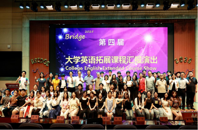 夏夜星辉与舞台流光交相辉映,青春活力与多元文化激情碰撞。6月11日晚,备受瞩目的“Bridge 2025”第四届大学英语拓展课程汇报演出在bat365中文官方网站弘石报告厅盛大举行。副校长苏文甫、采购招标处处长陈熙、学生工作部副部长毕轶慧,外国语学院党委书记张建高、副院长陈武、党委副书记邱岭、英语系主任钟泽波、大学外语第二教学部主任彭建、教学办主任尹晓娇和大学外语第一教学部拓展课程组全体教师出席活动。当晚师生代表300余人共同沉浸于这场由十余个学院学子联袂奉献的跨学科、跨文化的“盛夏视听盛宴”。