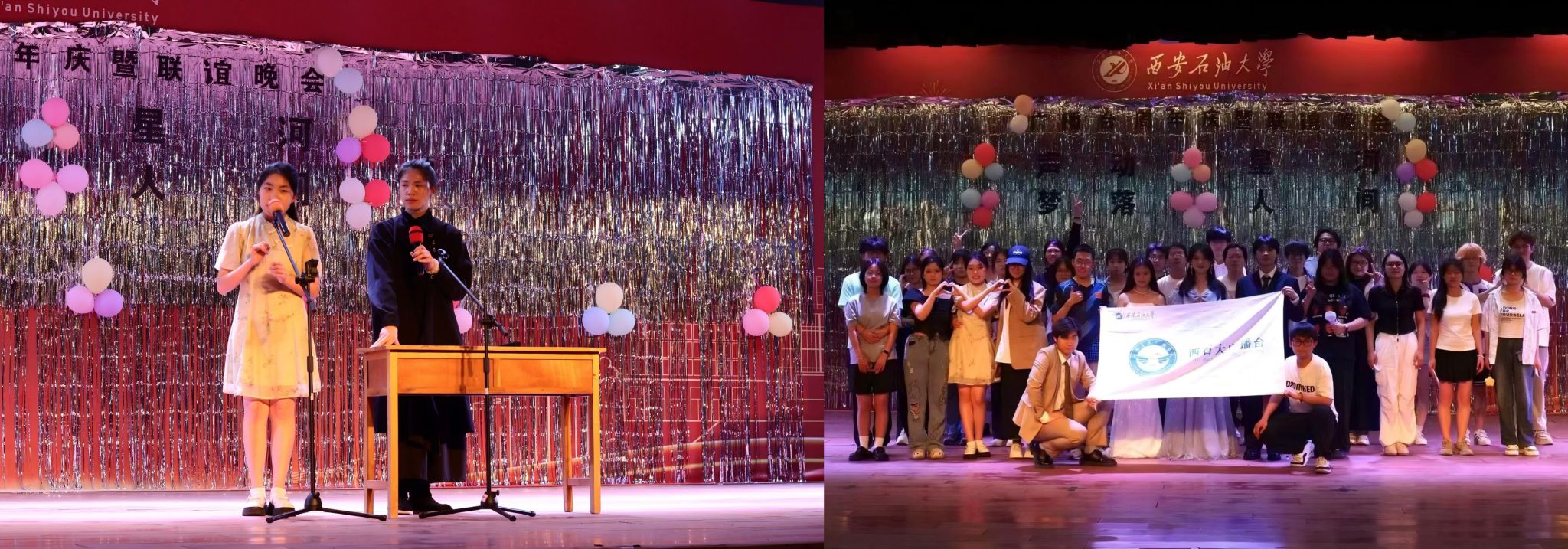 4月20日,广播社在腾辉大学生活动中心举办广播社首届周年庆暨社团联谊晚会。晚会以“声动星河、梦落人间”为主题,通过歌舞、朗诵、相声、话剧等多种节目形式,以声音传递时代正能量,展现了语言的魅力与青春的力量,晚会吸引了广播台全体成员和其他校内社团等300余人参加。