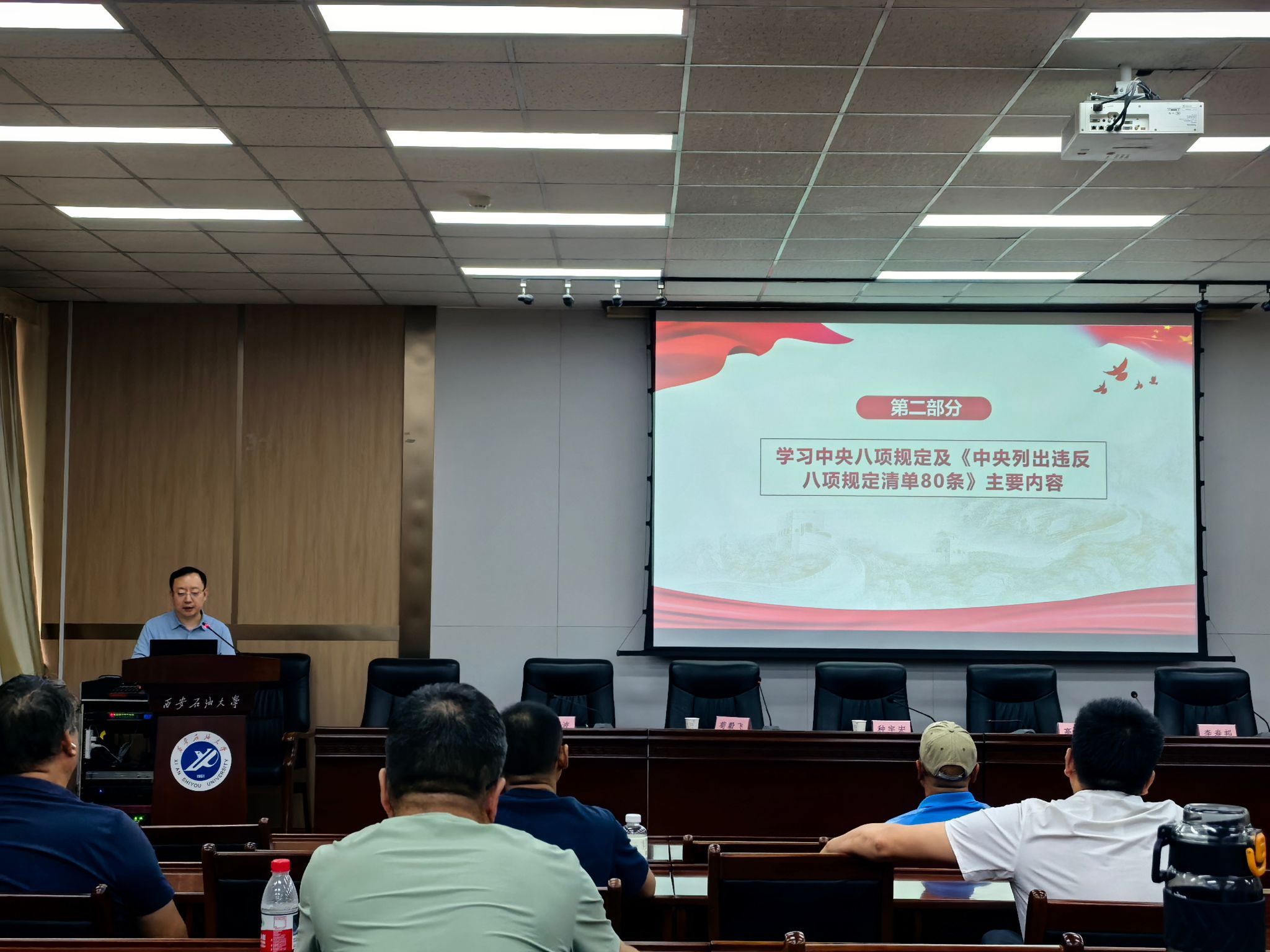 为深入贯彻落实中央八项规定精神,进一步加强教师党员的作风建设,提升教师队伍的纪律意识和党性修养,6月20日下午,副校长种宇宏在雁塔校区会议中心第五会议室为体育学院教工党员讲授题为《学习中央八项规定精神 筑牢廉洁自律防线》专题党课,学院领导班子成员、教工党支部书记、科级干部以及全体教工党员参加。会议由学院党总支书记苟毅飞主持。