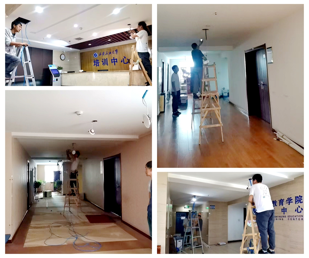 为保障工程进度与质量,学院安排专人全程跟踪协调,加班加点推进项目实施,确保项目按计划完成。本次改造范围覆盖培训中心南楼、北楼及明德楼,在出入口、前台、办公区、教学区、客房区、健身房、电梯、锅炉房等重点公共区域部署了高清网络摄像头,实现公共区域全覆盖、无死角。