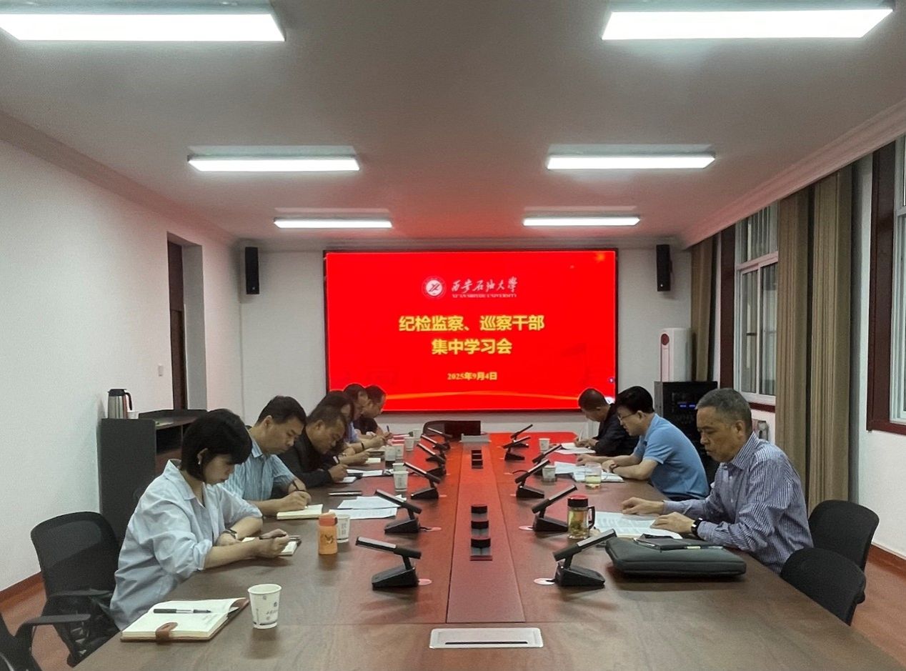 9月4日上午,纪检巡察干部2025年第14次集中学习会在鄠邑校区办公楼101会议室召开,纪检监察机构、党委巡察工作办公室全体干部参加。会议由校党委副书记、纪委书记、监察专员王辉强主持。