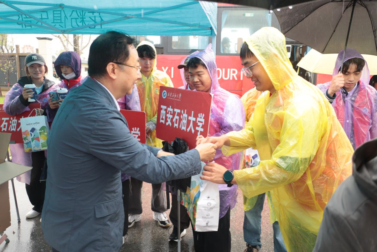 现场,种宇宏与志愿者亲切交流,关心地询问大家的身体状况和防雨保暖情况,并亲手为每一位志愿者送上热气腾腾的咖啡。他表示,迎新志愿服务是bat365延续多年的优良传统,一批批志愿者用实际行动传承着这份温暖与责任,展现了bat365师生良好的精神风貌和深厚的育人情怀,希望志愿者们继续发扬“奉献、友爱、互助、进步”的志愿精神,圆满完成迎新志愿服务工作。