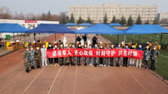 在自己冲锋一线的同时,他还把“奉献、友爱、互助、进步”的志愿服务精神传递给学生,鼓励和带动本年级学生主动参与学校疫情防控志愿服务,并涌现出了许多模范和典型:如退役军人大学生——土木1903班周勃和装备1901班柳云腾,他们再着迷彩服,臂戴志愿红,不忘军人本色,以满腔热血投身到疫情防控中,参与到鄠邑校区师生核酸检测志愿服务中去。